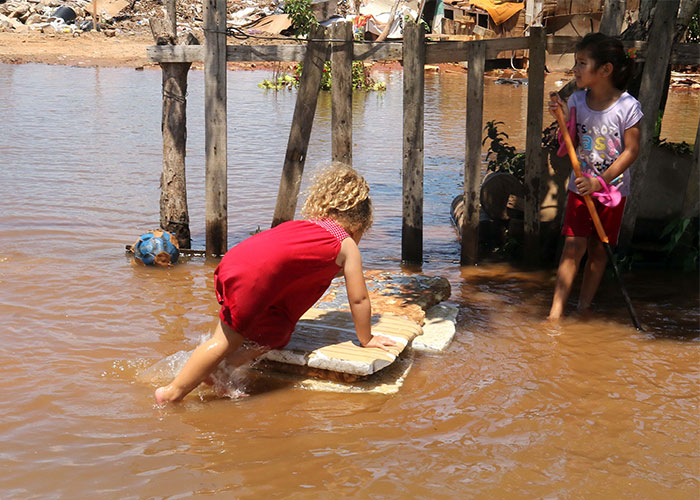 En diciembre de 2015, las inundaciones en Asunción, asociadas al fenómeno climático de El Niño, obligaron a cerca de 100.000 personas a abandonar sus hogares y trasladarse a precarias casetas de madera construidas en refugios ubicados en espacios públicos.
