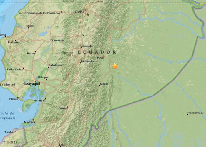 El Servicio Geológico de EE.UU. (USGS, por sus siglas en inglés), por su parte, estima la magnitud del sismo en 5,2 y su profundidad en 18,7 kilómetros. Señala que su epicentro se ubica a 30,7 kilómetros de Cantón Palora.