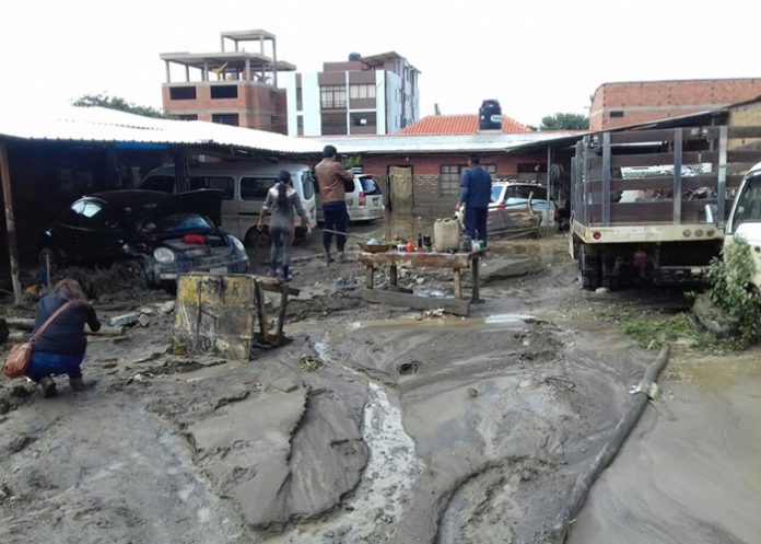 La víspera el río Taquiña se desbordó y afectó la localidad de Tiquipaya, a unos 250 kilómetros al este de La Paz. Según imágenes televisivas un lodo espeso recorrió las calles llevándose más de dos casas y automóviles que estaban a su paso.