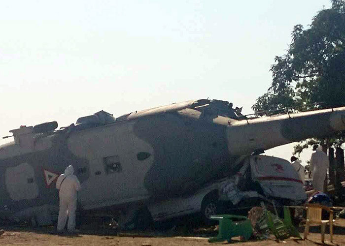 El helicóptero aplastó a un vehículo que se encontraba en tierra.