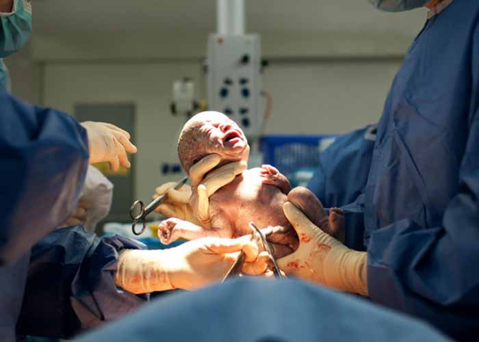 Los médicos realizaron la cesárea de urgencia y salvaron al bebé, que pesa unos 900 gramos y está ingresado en la unidad de cuidados intensivos, según informó el hospital.