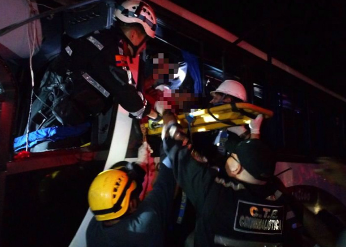 Las unidades de rescate debieron extraer a los pasajeros de ambos autobuses que se encontraban atrapados en el interior de los vehículos.