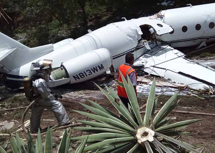 Fotografías publicadas por la comisión de emergencias muestran un jet Gulfstream blanco partido a la mitad cerca del centro. Los bomberos rociaron espuma y parte del avión parecía estar en una calle.