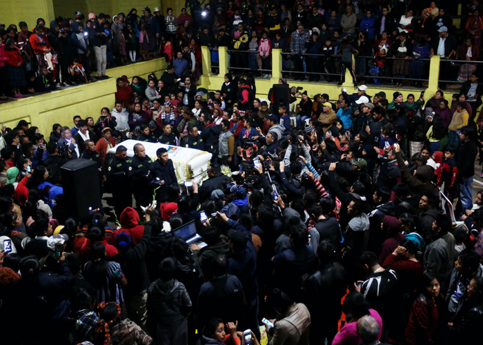 A su llegada a San Juan Ostuncalco, ubicado en el occidental departamento de Quetzaltenango, centenares de personas se manifestaron enfurecidas por la "justicia" del caso y que un hecho como este "no vuelva a pasar", mientras aplaudían al paso de los agentes de la Policía Nacional Civil que sostenía el ataúd.