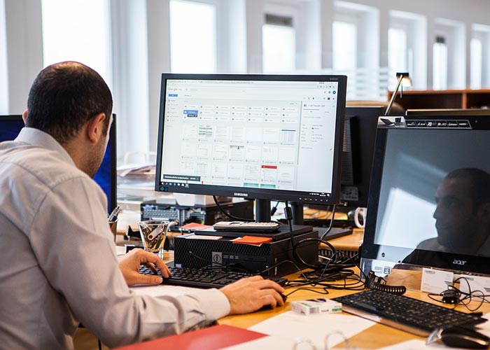 Explicó que en los lugares de trabajo si el monitor de la computadora está por debajo de la altura de la vista, la cabeza se fuerza en una posición de flexión que, si se mantiene mucho tiempo, puede provocar dolor.