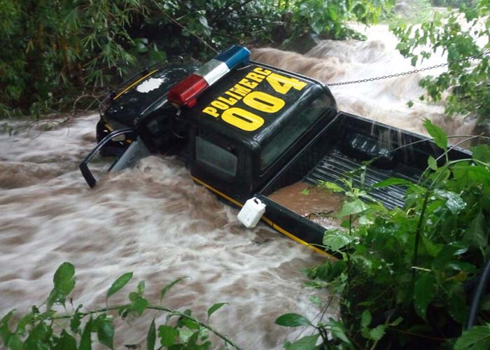 La patrulla de la Policía Nacional Civil fue arrastrada en las últimas horas del lunes por el río entre los poblados de Chuchú y El Zapote (Escuintla) y el cadáver fue hallado en jurisdicción de San Andrés Usuna (Escuintla), a pocos metros del vehículo.