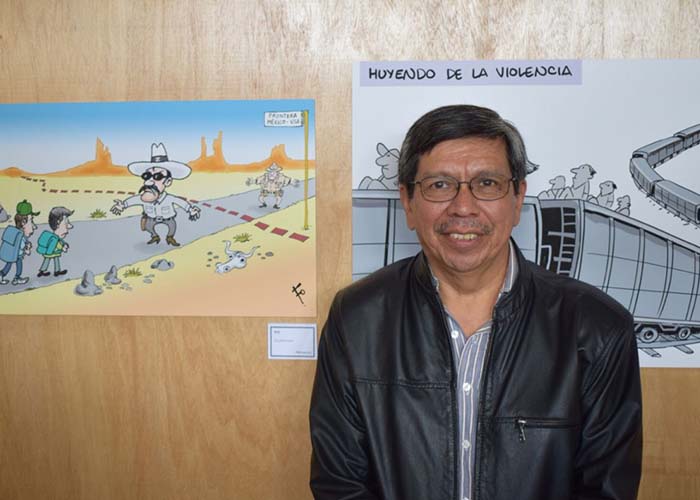 Cada ilustración, rodeada en su parte superior por un alambre de espinas, deja ver la odisea de las personas que huyen de la guerra, la violencia o la persecución, arriesgando en muchos casos su vida solo con el pensamiento de buscar un lugar mejor para vivir.