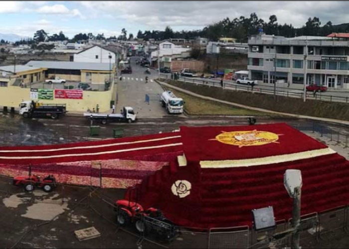 El cantón Pedro Moncayo, de la provincia de Pichincha (Ecuador), buscó este sábado hacerse un hueco en Guinness World Records con el arreglo floral más grande del mundo, levantado en la plazoleta La Banda, de la población de Tabacundo, formado por entre 550.000 y 560.000 rosas.