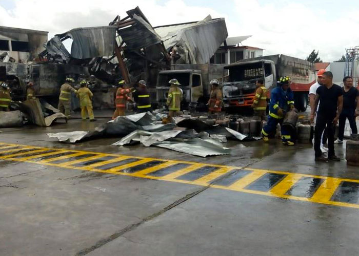 El incendio destruyó al menos 2.400 cilindros de gas, 6 camiones y 2 vehículos pequeños, mientras que otros 17 camiones usados para repartir el producto quedaron quemados parcialmente.