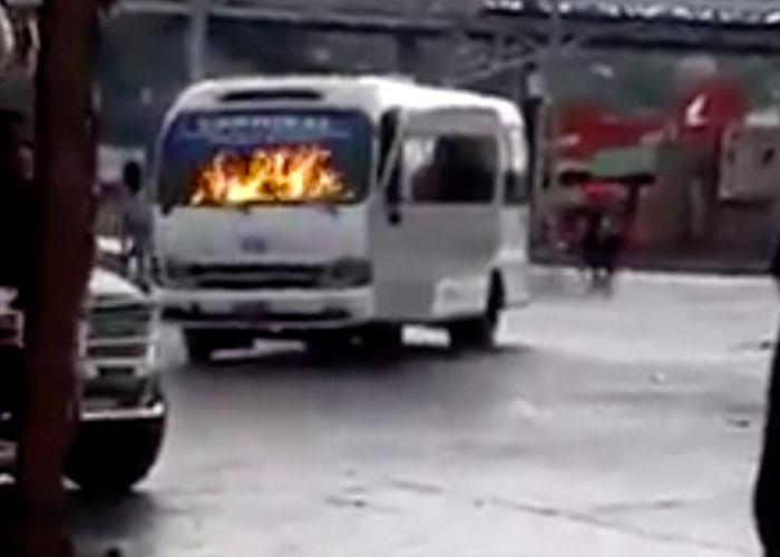 Según relatos, los pasajeros del medio de transporte tuvieron que abandonar rápidamente el bus ejecutivo para evitar ser calcinados y apedreados por los enardecidos jóvenes que gritaban consignas populares como “aumento en la gasolina es la muerte”.