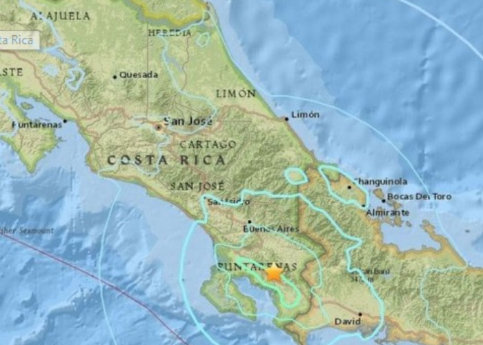 El epicentro se registró a 11 kilómetros al este del Golfito (sur), provincia de Puntarenas, en la costa Pacífico, y tuvo una profundida de 21 kilómetros. En algunas localidades se fue la luz y se cayeron objetos, pero sin consecuencias graves