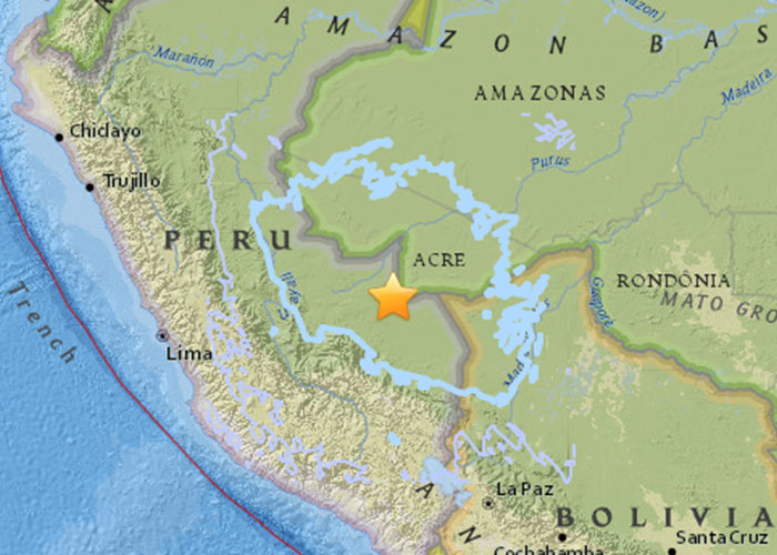 El reporte indica que el sismo se registró a una profundidad de 609 kilómetros en una zona de la frontera este de Perú con Brasil.