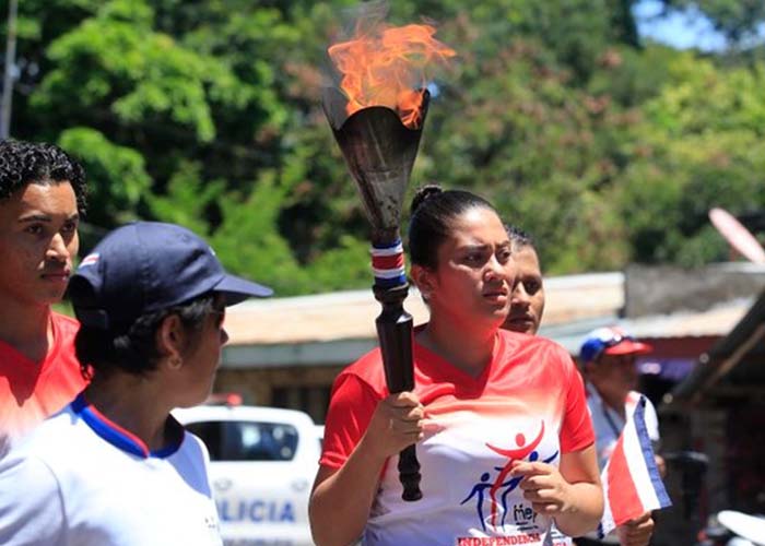 La antorcha en Costa Rica es movilizada por unos 20.000 estudiantes de primaria y secundaria a lo largo de 378 kilómetros desde La Cruz, frontera con Nicaragua, hasta Cartago, donde cada 14 de septiembre es recibida por el presidente del país y se celebra una sesión del Consejo de Gobierno.