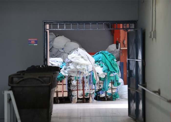 En la Lavandería Central manejan una cantidad similar al día de ropa contaminada. Según Granados, ahí no laboraron este lunes parte del turno de la mañana para evitar el enfrentamiento entre los empleados que no están en huelga y los que sí.