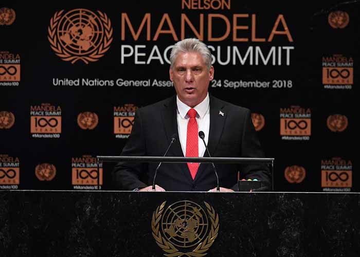 El presidente de Cuba, Miguel Díaz-Canel Bermúdez, brindó su discurso en la Cumbre por la Paz Nelson Mandela, en Nueva York.