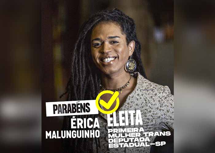 La candidata Erica Malunguinho, del Partido Socialismo y Libertad (PSOL), fue electa como diputada del estado de Sao Paulo y así se convirtió en la primera persona transgénero que logra un curul.