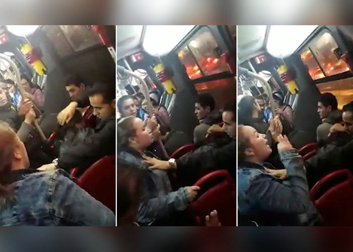 Una mujer muy enfurecida jamás esperó encontrar a su esposo, a quien hacía en el trabajo, con su amante a bordo de un bus. El hecho que ocurrió en Colombia fue grabado, compartido en las redes sociales y ahora el video es viral.