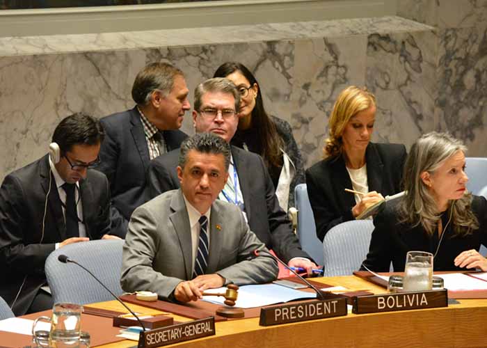 El diplomático boliviano instó a los miembros del Consejo de Seguridad a reflexionar sobre el futuro de las sociedades y recordó que el mundo se encuentra en tiempo de paz y no de invasión y dominación.