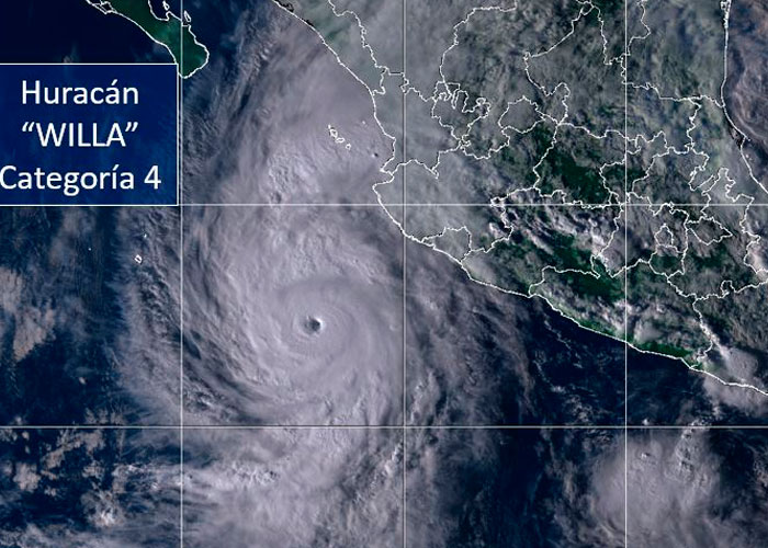 El huracán Willa, recientemente formado en el océano Pacífico, ha ganado fuerza este domingo y ha llegado a la categoría 4, mientras se dirige a la costa pacífica de México, informa el Centro Nacional de Huracanes de EE.UU.