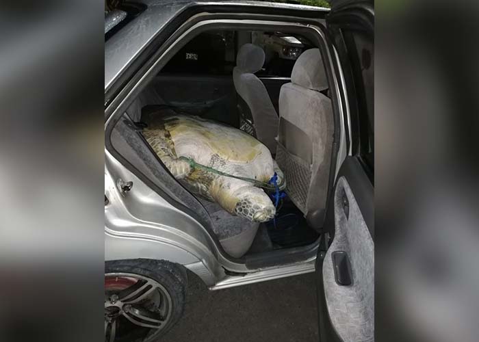 La Policía de Costa Rica detuvo la madrugada de este martes a un hombre que llevaba a dos tortugas de gran tamaño en un vehículo.