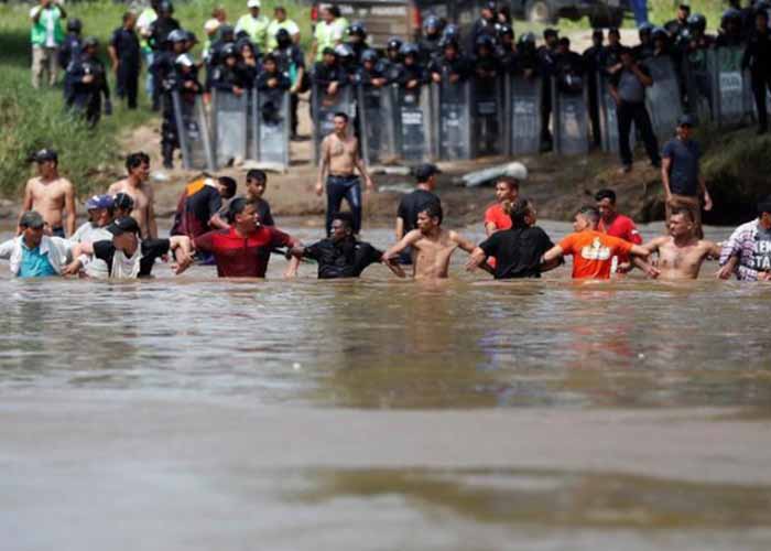 Cientos de migrantes hondureños se lanzaron este lunes al caudaloso río fronterizo entre Guatemala y México para ingresar a suelo mexicano, ante el blidaje de la frontera terrestre, y poder así continuar a pie su travesía hacia Estados Unidos, constató la AFP.