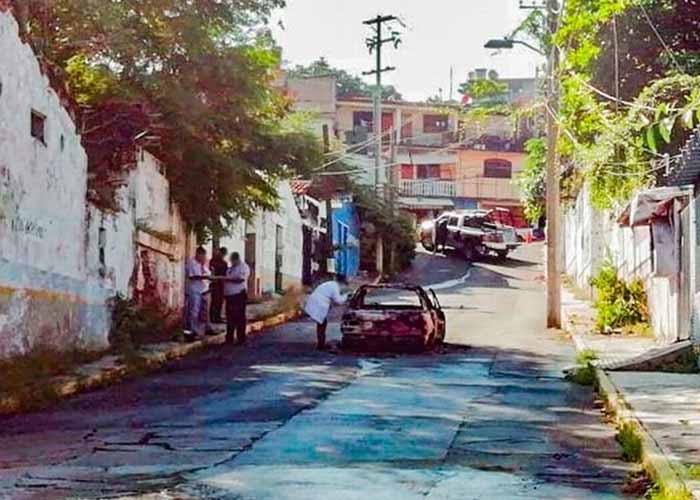 Calcinan tres cadáveres dentro de taxi en zona turística de Acapulco