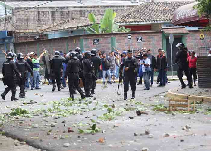 Agentes del CAM Santa Tecla disparan contra vendedores, quienes responden lanzando objetos. Reporta: Ricardo Chicas Segura pic.twitter.com/tVUMbXtS4K