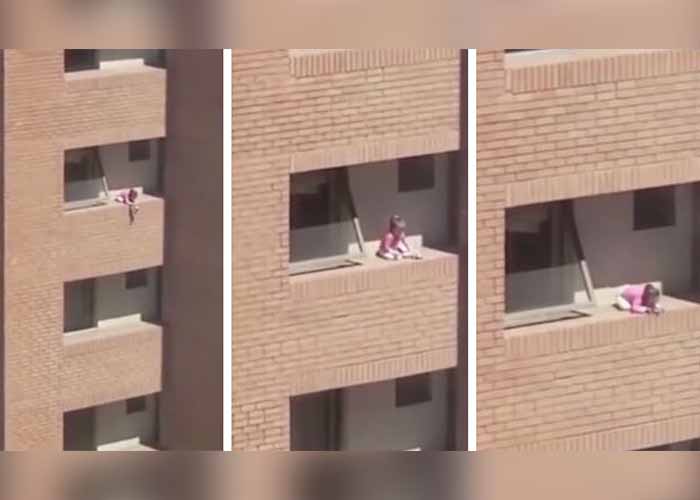 Una niña jugaba con su muñeca al borde del precipicio de un quinto piso.