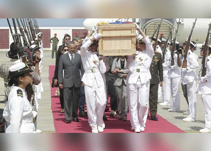 Los restos de quien también fue ministro de Energía, Petróleo, Economía y presidente de la estatal Petróleos de Venezuela (PDVSA) fueron recibidos con honores por la vicepresidenta, Delcy Rodríguez; el canciller, Jorge Arreaza, y el ministro de Defensa, Vladimir Padrino López.