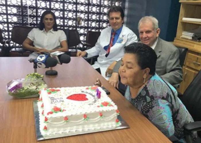 Durante la celebración, Blanca Vega compartió con algunos de los especialistas que estuvieron presentes en su intervención hace 25 años y apagó las velas de un pastel.