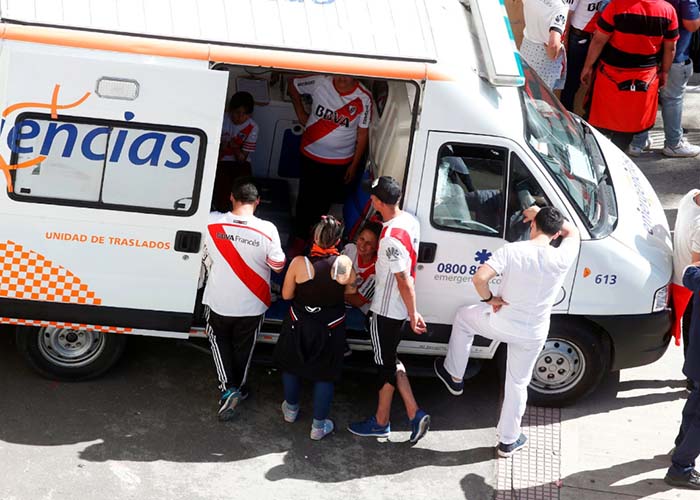 La segunda etapa de la final en el estadio El Monumental de River debía comenzar, pero el partido se retrasó una hora después de que el entrenador de Boca que llevaba a sus jugadores sufrió graves daños en el camino hacia el partido.
