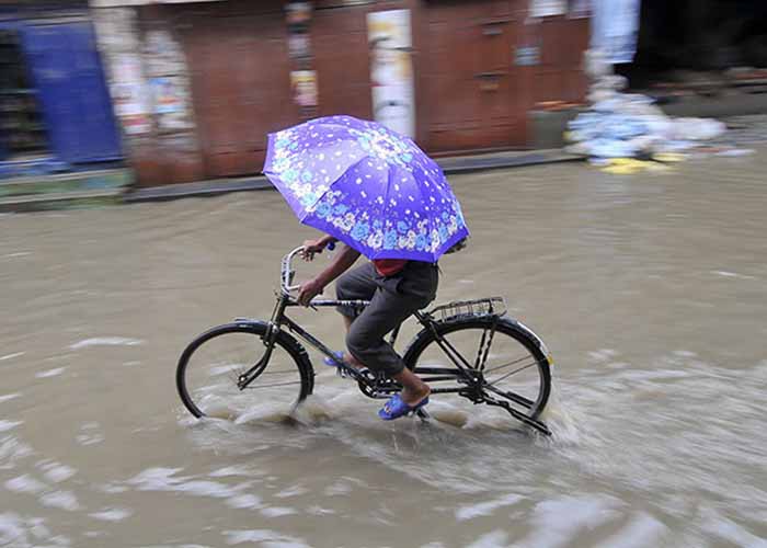 El hombre no quiso dejar su bicicleta pese a que le gritaban que la soltara para poderse liberar de la fuerte corriente de agua.
