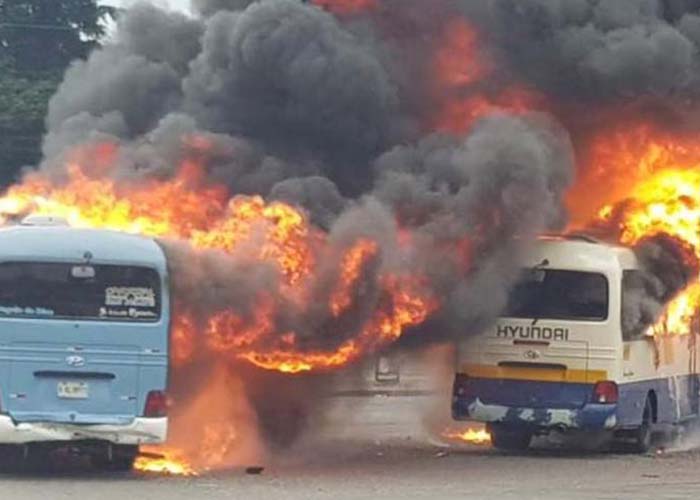 La quema de las unidades de transporte se produjo en medio de una protesta que se desarrolló durante este jueves frente a ese centro de estudios superiores en rechazo al aumento del transporte público.