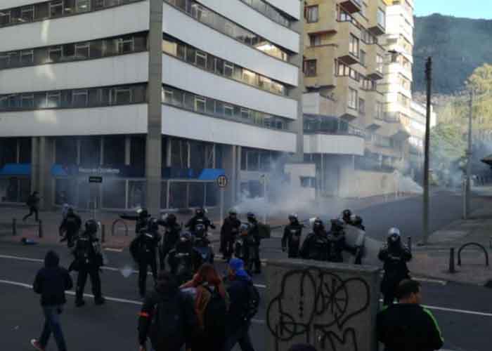 Esta tarde se registró choques entre la Policía y los estudiantes, luego que los agentes dispersaran al grupo de universitarios que estaban marchando por la avenida Caracas, en el centro de la capital colombiana.