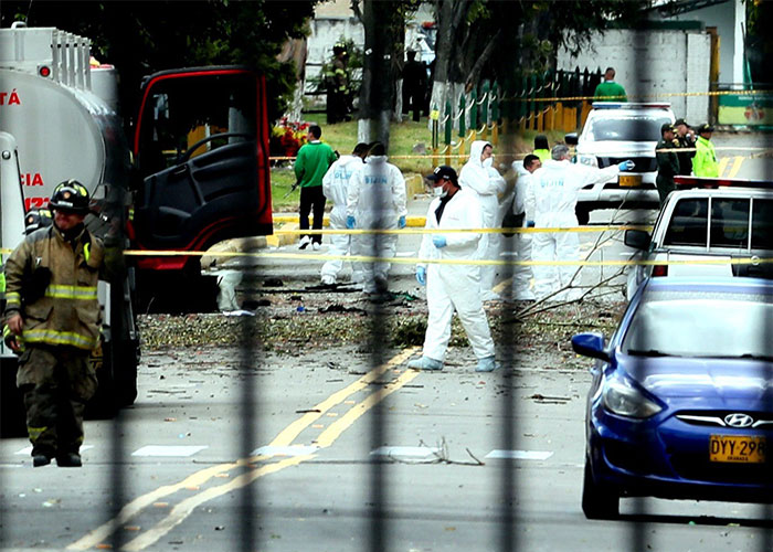 El fiscal general de Colombia, Néstor Humberto Martínez, afirmó en una rueda de prensa que el autor material del atentado es José Aldemar Rodríguez, quien murió al detonar 80 kilos de pentolita que llevaba en una camioneta.