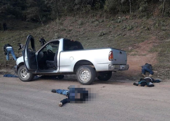 Los pobladores reportaron el enfrentamiento a las autoridades, vía telefónica, y al lugar se trasladaron policías estatales y militares, quienes «encontraron dos camionetas con múltiples disparos de armas de fuego y en su interior los cuerpos de 10 personas», de acuerdo con el informe oficial.