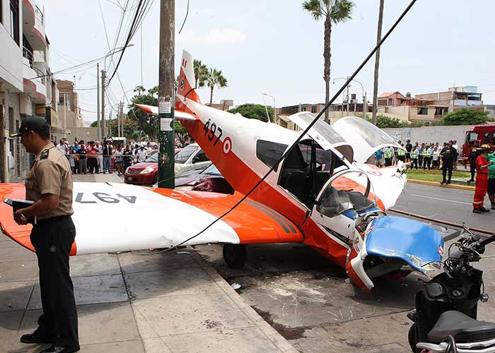 Explicó que la aeronave no alcanzó a aterrizar de emergencia en la cercana Base Aérea de Las Palmas y se precipitó en la avenida, golpeando a la camioneta y a una moto, que resultaron con daños menores.