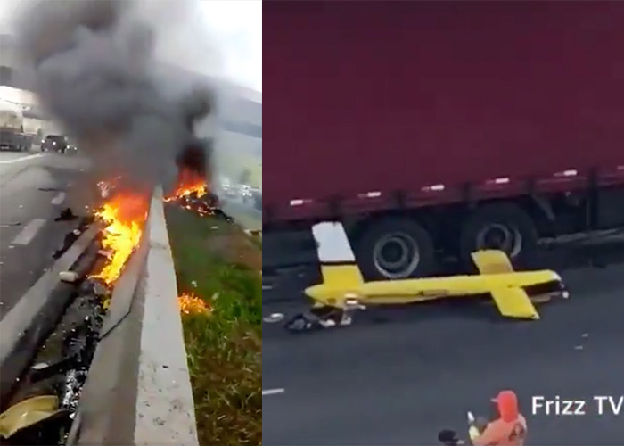 Una parte de la aeronave fue consumida por las llamas, mientras que otras piezas del vehículo quedaron esparcidas por la carretera, una de las vías de acceso para entrar y salir de Sao Paulo.
