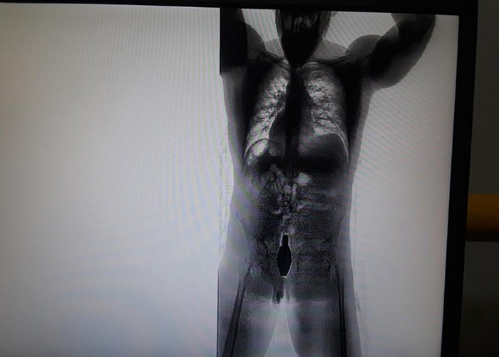 La granada que llevaba Martínez, quien es miembro de la "Mara-18" (pandilla), fue descubierta a través de una "radiografía de baja radiación" hecha en la prisión, según la información oficial.