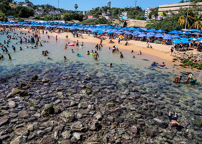 Las rocas del mar, las paredes de los restaurantes, quedaron expuestas a la visita en playas como Caleta, Caletilla y en zonas de el Revolcadero, aunque los turistas no suspendieron sus actividades y algunos fueron vistos nadando en el agua.