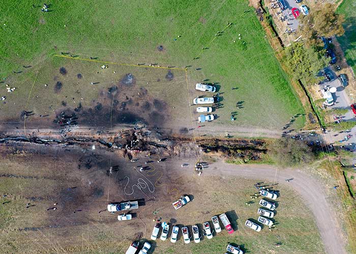 El incendio ocurrió mientras una multitud en la localidad de Tlahuelilpan llenaba bidones con la gasolina que salía de la toma clandestina.