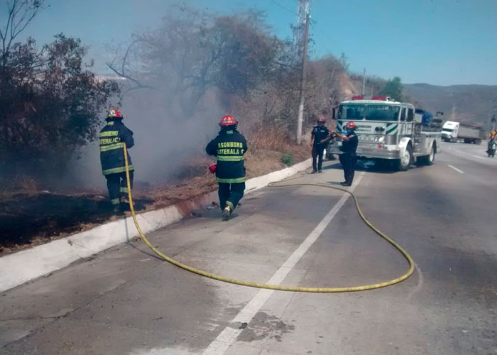 Bulevar que comunica a la zona 15 Vista Hermosa, en el lugar labora unidad contra incendios tambien un camion cisterna ya controlado en un 80% el incendio, recomendamos precaución a los automovilistas pic.twitter.com/cKsaSR7piH