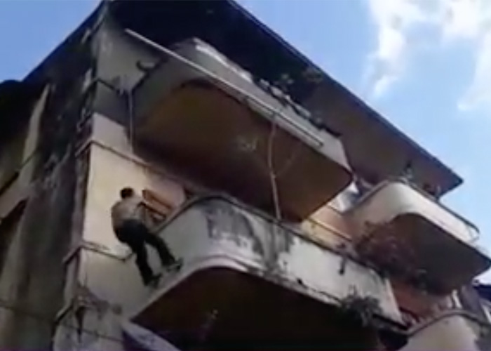 Lo también sorprendente de la hazaña es que el hombre se balanceaba por los cables de electricidad. Al parecer conocía cuales eran los de corriente.