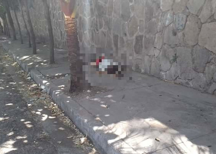 El fallecido estaba tirado en la acera, mientras que la pared cercana al cuerpo estaba manchada de sangre por lo que se presume que los hechores lo estrellaron contra esta y después falleció.