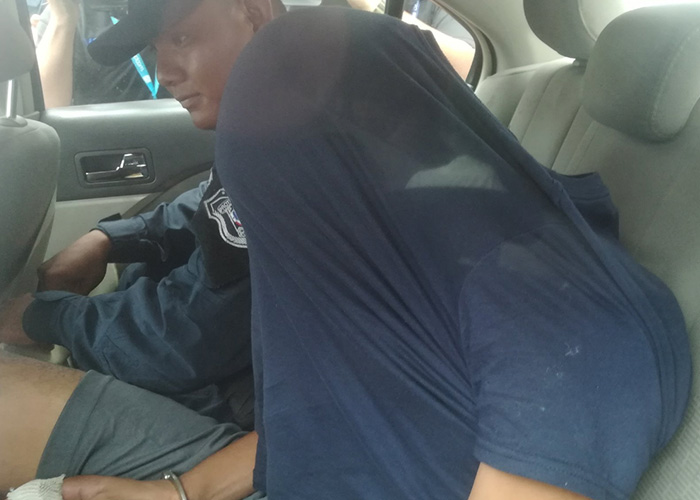El aprehendido vestía un suéter color negro con el cual se cubría la cabeza y un pantalón corto color gris.