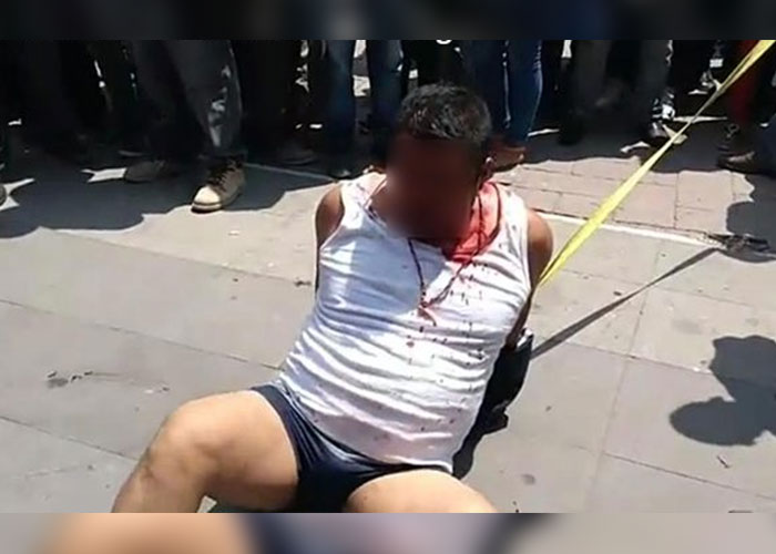 En el camino, al hombre que lo llevaban a jalones, lo golpearon con un machete en las piernas, como acto de corrección.