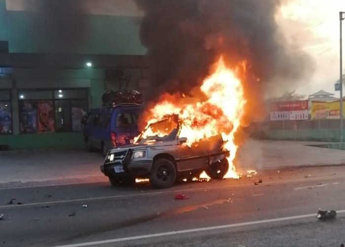Conductor muere quemado dentro de su carro después de haberse producido un choque en San Carlos, Costa Rica.