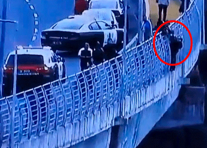 A través de la cuenta oficial de los Twitter de Carabineros (policía) en Chile se publicó un video de YouTube en el que se observa como uno de estos evitó que una mujer se lanzara de un puente.