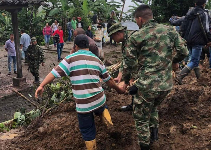 En el municipio de Rosas realizan labores de rescate el Ejercito Nacional, Gestión de Riesgo y Desastres del Cauca, Defensa Civil, los cuerpos policiales y bomberiles de la localidad.