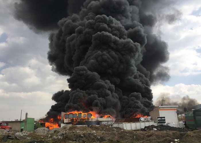 Alrededor de las 16 horas de este sábado se registró un incendio en una fábrica de reciclaje ubicado en la esquina de las calles Rayón y Mina, en la comunidad El Tejocote, ejidos de Santiago Miltepec, Toluca., esto en México.